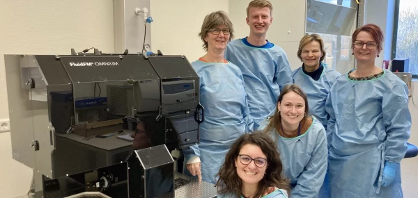Op de foto het BPRC-team samen met Dr. Ludovica Rizzo, Life Science Application Scientist bij Cytosurge (onder).